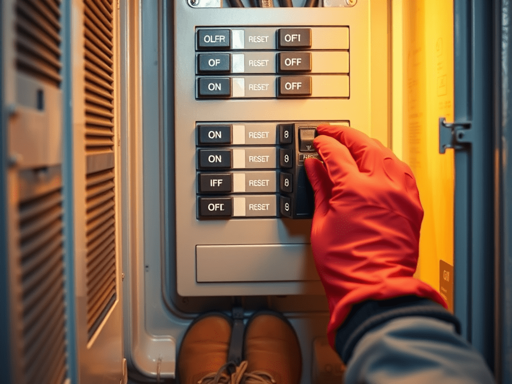 Before you begin, ensure that all appliances and lights in the affected area are turned off. This prevents any sudden surges when resetting the breaker. For your safety, wear rubber gloves and shoes with rubber soles to minimize the risk of electrical shock.